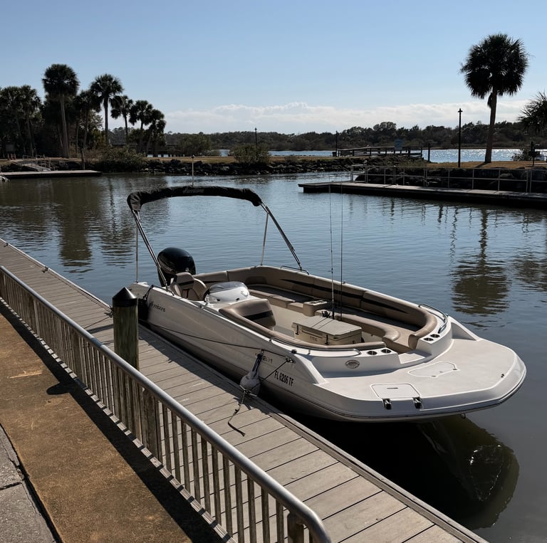 Welcome aboard! The Hurricane SunDeck Sport is a versatile deck boat built for speed, comfort, and fun on the water. Safety is our #1 priority, so the boat meets all U.S. Coast Guard requirements — and then some. Boarding ladders are available at both the front and back if you’d like to take a swim, and a shade cover can remain up for the entire trip for added comfort.
